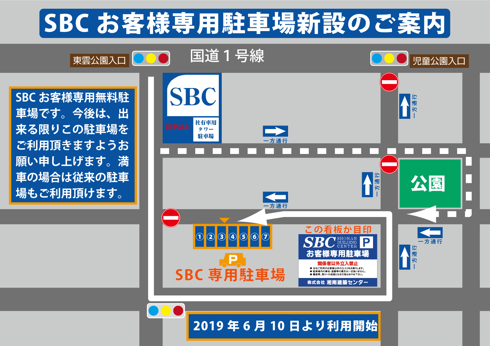 案内図は下記リンクからご覧ください。http://www.sbc-co.jp/topics/file/NewHiratsukaParking.pdf